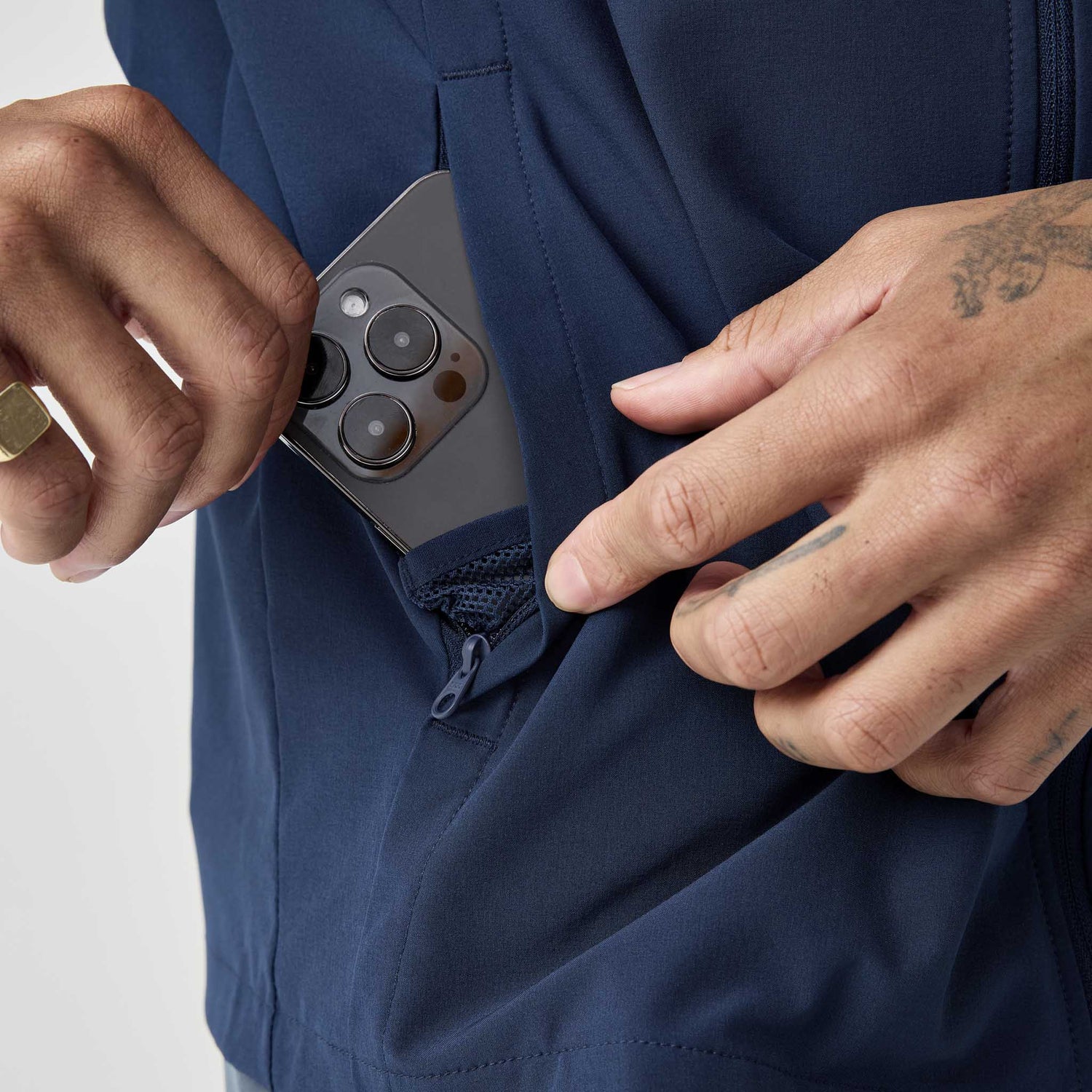 • Secure hand pockets with additional phone-sized interior pocket.